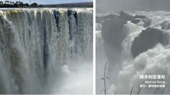 在全球地名、景观名、文化符号的命名中,近年来有“去殖民化还原本土名称”的趋势。本土名称往往更贴近当地风貌的本质,尊重和传递出一个地区的历史厚度与文化灵魂。在此地我看到两者并存,国际旅游宣传品和册子写的是维多利亚瀑布,赞比亚一侧有莫西奥图尼亚国家公园(意为“雷霆之烟”国家公园)。