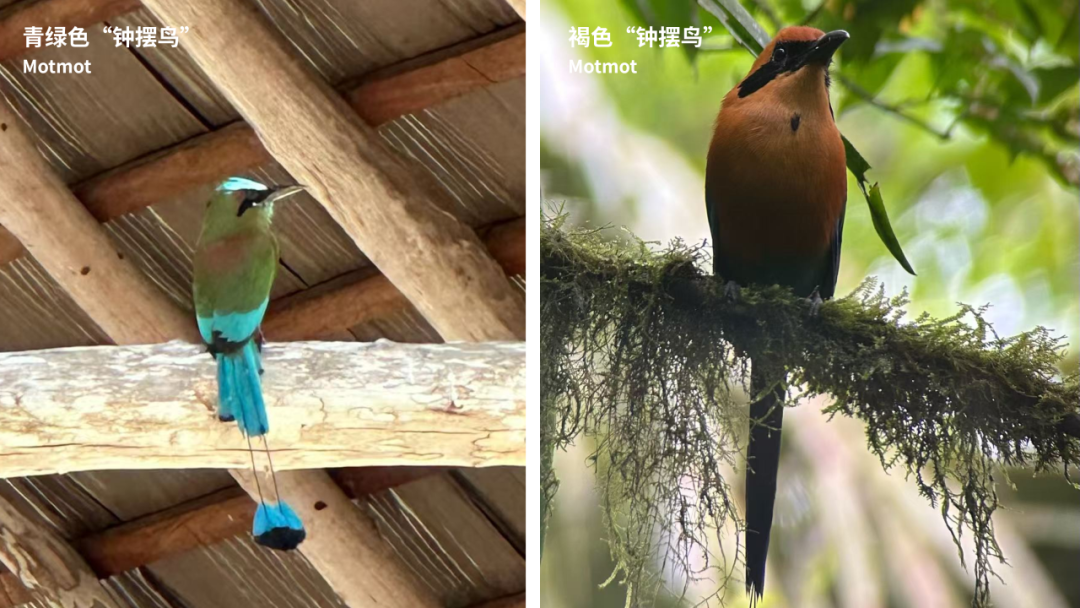 这里还是观鸟圣地,珍稀飞禽,有雌雄迥异的凤冠雉(Great Curassow),雄鸟羽毛几乎全黑并带有光泽,黄色喙瘤,雌鸟全身和羽冠呈棕褐或暗褐色,纹理丰富,初看还以为是两种不同的鸟类;还有像钟摆一样甩动尾巴的motmot(拟啄木鸟),我们跟着当地人戏称它“钟摆鸟”。