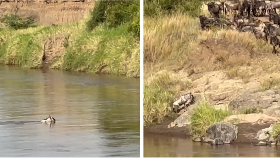 根据护林员多年观察经验总结,角马下河可能权衡的三个要素:1)水里有无鳄鱼;2)坡不要太陡,不然容易失控打滚;3)水流不能太急,不然游到对岸会偏移上岸点。至于真正的原因,也许只有第一只跳下河的角马知道。