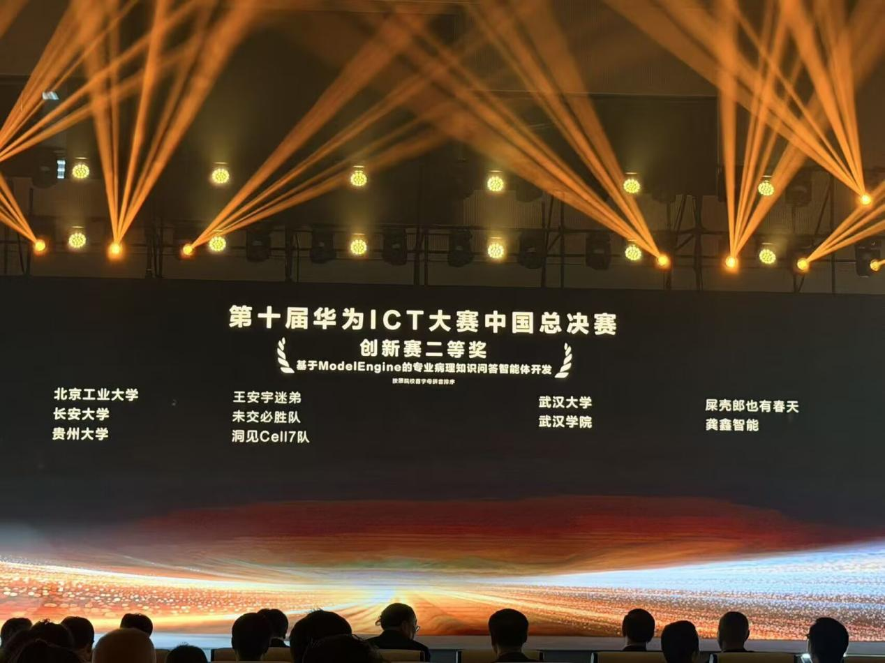 第十届华为ICT大赛中国总决赛近日圆满落幕。由我校网络工程专业23级学生胡铎、陈鑫、龚崇期组成的参赛团队,在“基于 ModelEngine的专业病理知识问答智能体开发”赛道中表现优异,成功荣获国家级二等奖。