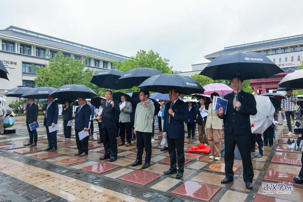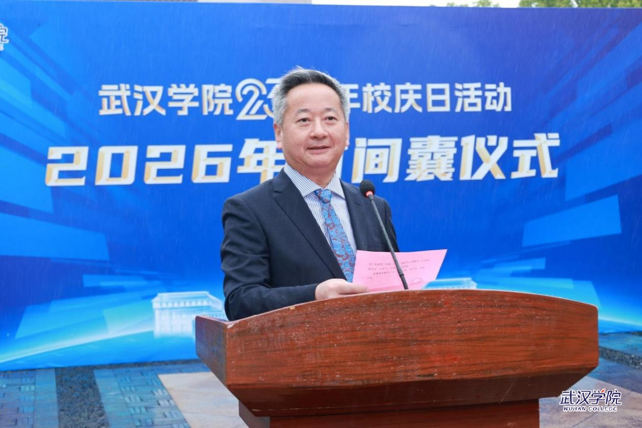 4月28日,武汉学院迎来23周年校庆。上午10点,春雨霏霏,润物无声,校领导、中层干部、师生代表及校友代表齐聚时间囊广场,隆重举行2026年百年时间囊仪式,共同封存具有纪念意义的年度代表性成果,定格校园记忆,传承武院精神。