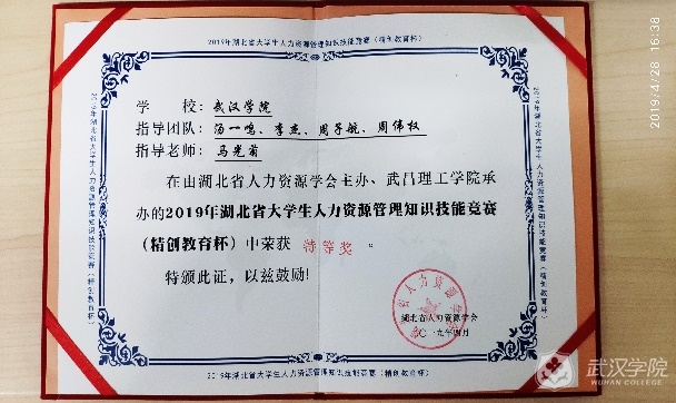 2019年4月27日,由湖北省人力资源协会主办,武昌理工学院承办,浙江精创教育科技有限公司提供比赛技术与平台的“精创教育杯”人力资源管理知识技能竞赛湖北省省赛,在武昌理工学院商学院举行。