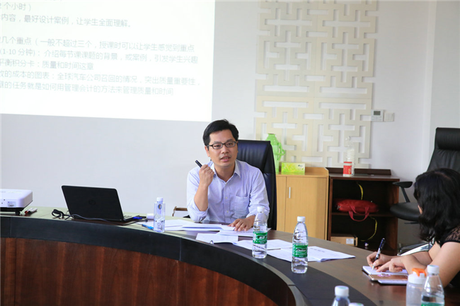 在随后的分组研讨会活动中,郑树棠教授和周高光博士分别为我校会计及金融学院、工商管理系和信息系等教学单位负责人、专业委员会主任、科目组组长及代表教师重点分享和交流了相关专业的人才培养方案指导及课程体系、教学方案、课堂教学方法及教学活动等内容。
