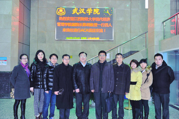 12月24日上午,江西财经大学现代经济管理学院副院长陈明一行四人来我校开展ACA项目交流。我校常务副校长王达金、会计及金融学院常务副院长彭浪出席会议。ACA项目教师及优秀学生代表参加了会议。交流会在光谷校区行政楼二楼会议室召开。