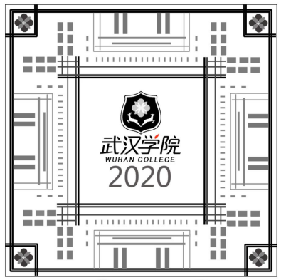 设计说明:设计以马化腾教学楼为原型提取几何形,通过“点”、“线”、“面”的重构组成适合纹样,图形布局既像在展示武汉学院企鹅广场俯视图全景,又能从细节中发现武汉学院建筑特有的门廊、窗格、屋檐及丹桂元素。设计意在整体上展示武汉学院建筑群传统与现代相融的书院印象,既是对武汉学院校园风貌的概括,也是对武汉学院办学理念的诠释。数字“2020”起笔与落笔间的笔画做了调整并同步居中展示,以提示时间囊封印着不寻常的2020年记忆。