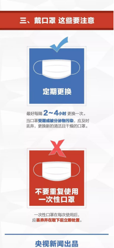 (1)新型冠状病毒以飞沫传播为主,正确佩戴医用外科口罩;