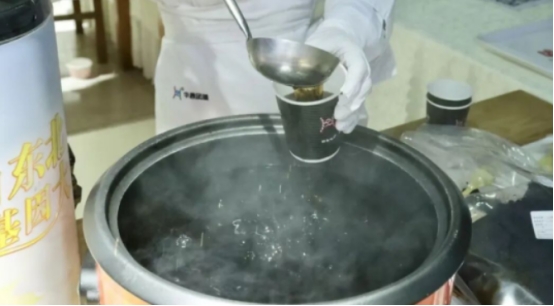 另外,因天气寒冷,食堂还特意熬制驱寒滋补红糖姜汤,甘甜中带着一丝辛辣,暖流从舌尖直达心底。有同学说:“初入大学的生活像红糖姜汤,虽有些混乱,但老师和同学的帮助都很暖心,刚好契合这份味道。”