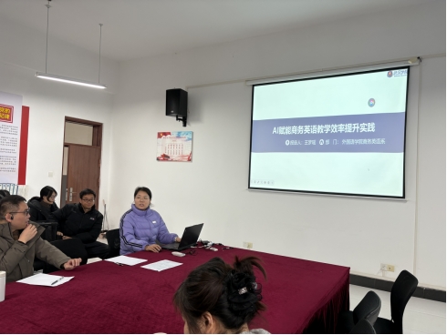 在演示汇报会上,王梦瑶老师首先以《AI赋能商务英语文化背景中的应用实践》为题展开汇报。深入探讨了人工智能技术如何系统性地融入商务英语教学的三大核心维度。她首先展示了如何借助豆包、DeepSeek等AI工具,对复杂多变的商务英语词汇进行高效梳理与深度解析,生成结构清晰、内容丰富的扩展性学习表格,为学生构建坚实的语言基础。在文化背景教学层面,王老师创新性地引入“即梦”AI视频生成技术,将抽象的文化差异、商务礼仪及跨文化沟通场景转化为生动直观的影像资料,使晦涩的文化概念跃然眼前,极大激发了学生的兴趣与课堂参与热情,实现了沉浸式文化体验。与此同时,她着力打造智能化知识库体系,通过动态整合海量教学资源并依托算法实现精准推送,不仅为教师提供了强大的备课支持,更依据学情数据实时优化教学内容,形成“分析——推送——反馈——迭代”的教学闭环。这三者有机融合,共同推动了商务英语教学从静态知识传授向动态能力培养的转型,显著提升了教学效能与学习质量,为商务英语教育的数字化提供了可复制的实践路径。