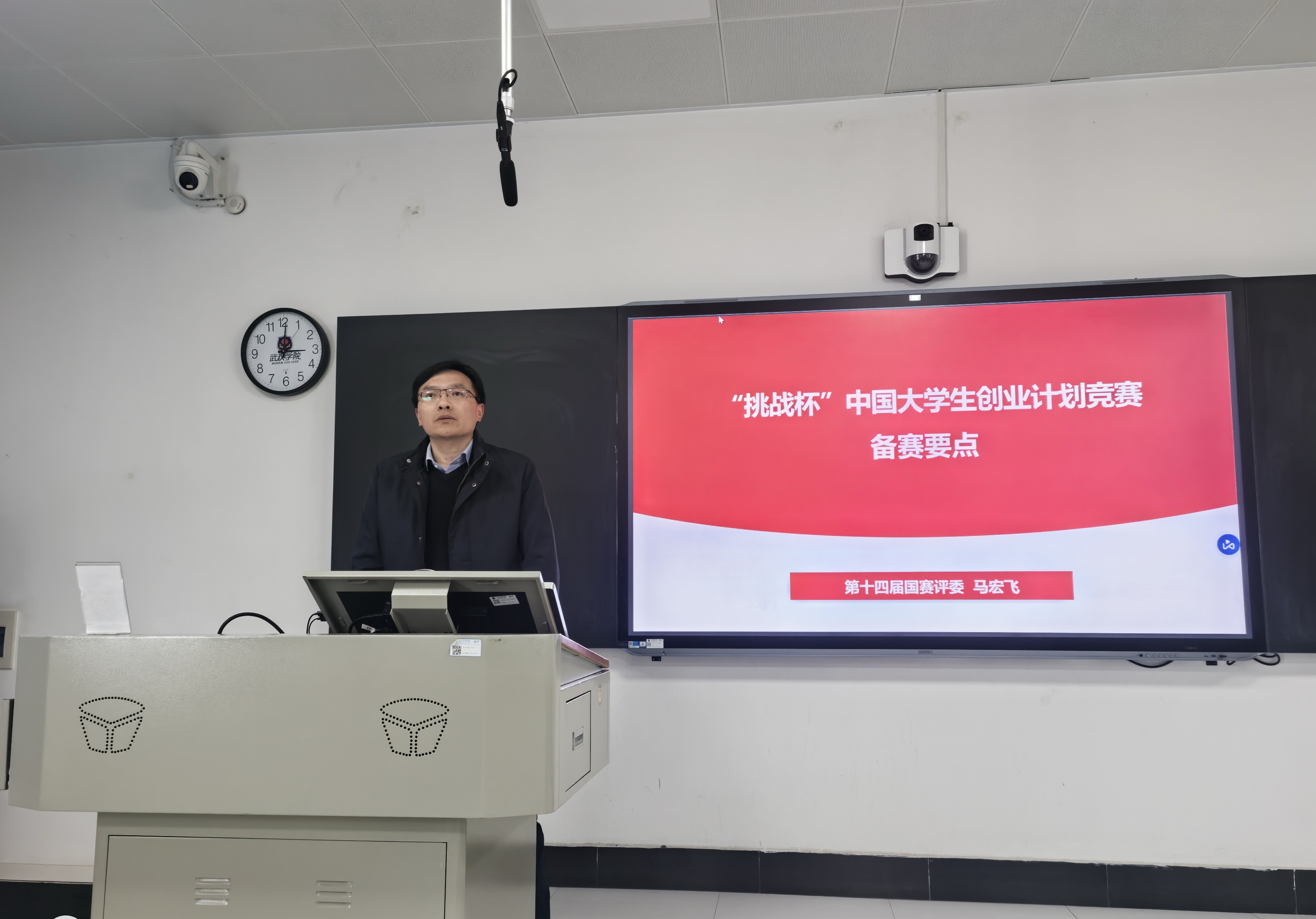 为积极备战2026年“挑战杯”大学生创业计划竞赛,3月11日下午,学校在4号学院楼4203教室举行专题培训会。本次活动由学生工作处副处长戚兰主持,邀请了曾担任第十四届挑战杯国赛评委、管理学院马宏飞老师担任主讲嘉宾,校党委副书记、副校长黄保红出席并致辞,各学院(部)分管学生工作副院长、团委书记、师生代表200余人参加活动。
