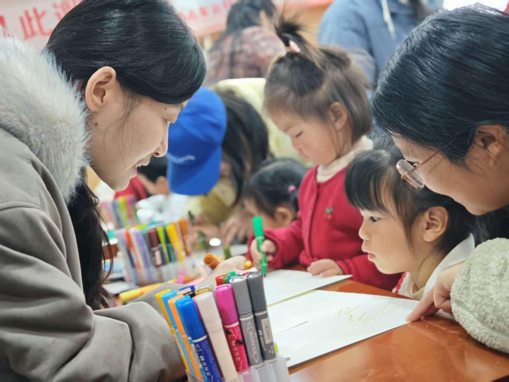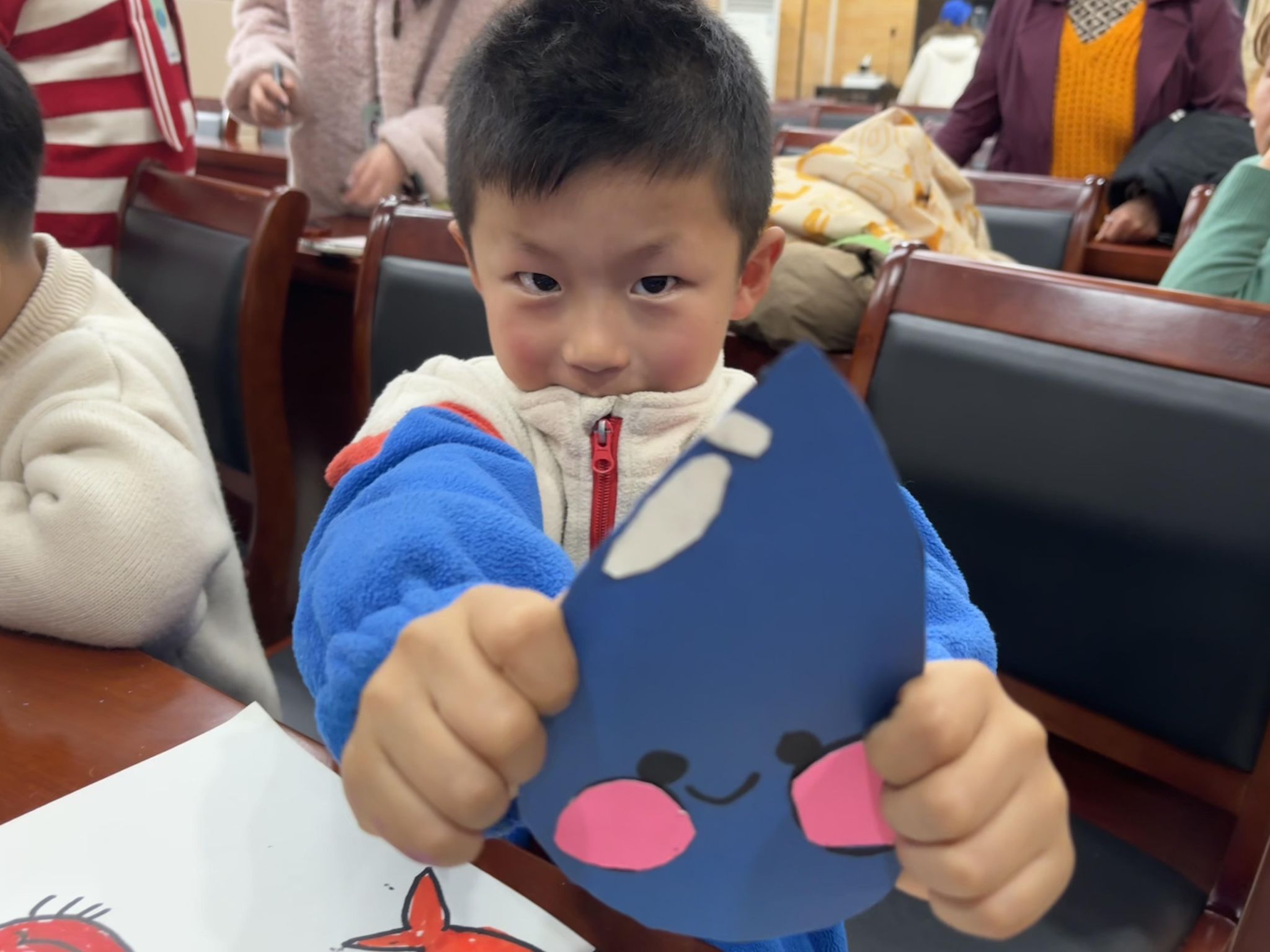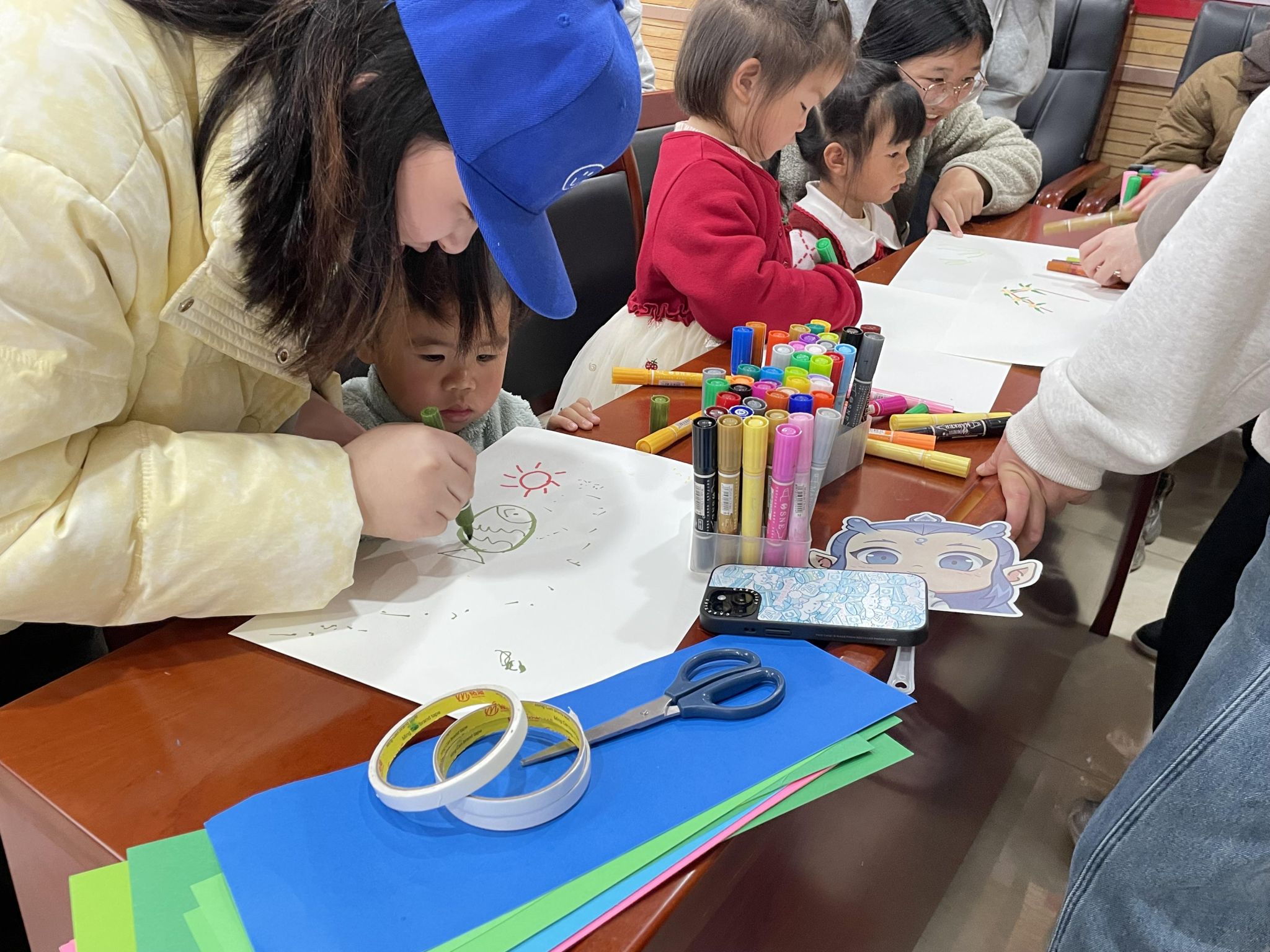 环保手工实践环节将现场气氛推向高潮。在社区“星橙画舍”的老师和志愿者指导下,家长带着孩子们用画笔、彩纸、剪刀创作作品:有的画出“水滴宝宝”,配上“节约用水,从我做起”的标语;有的制作环保书签,写下“随手关灯,节约用电”;还有的折出小水杯,寓意“珍惜每一滴水”。