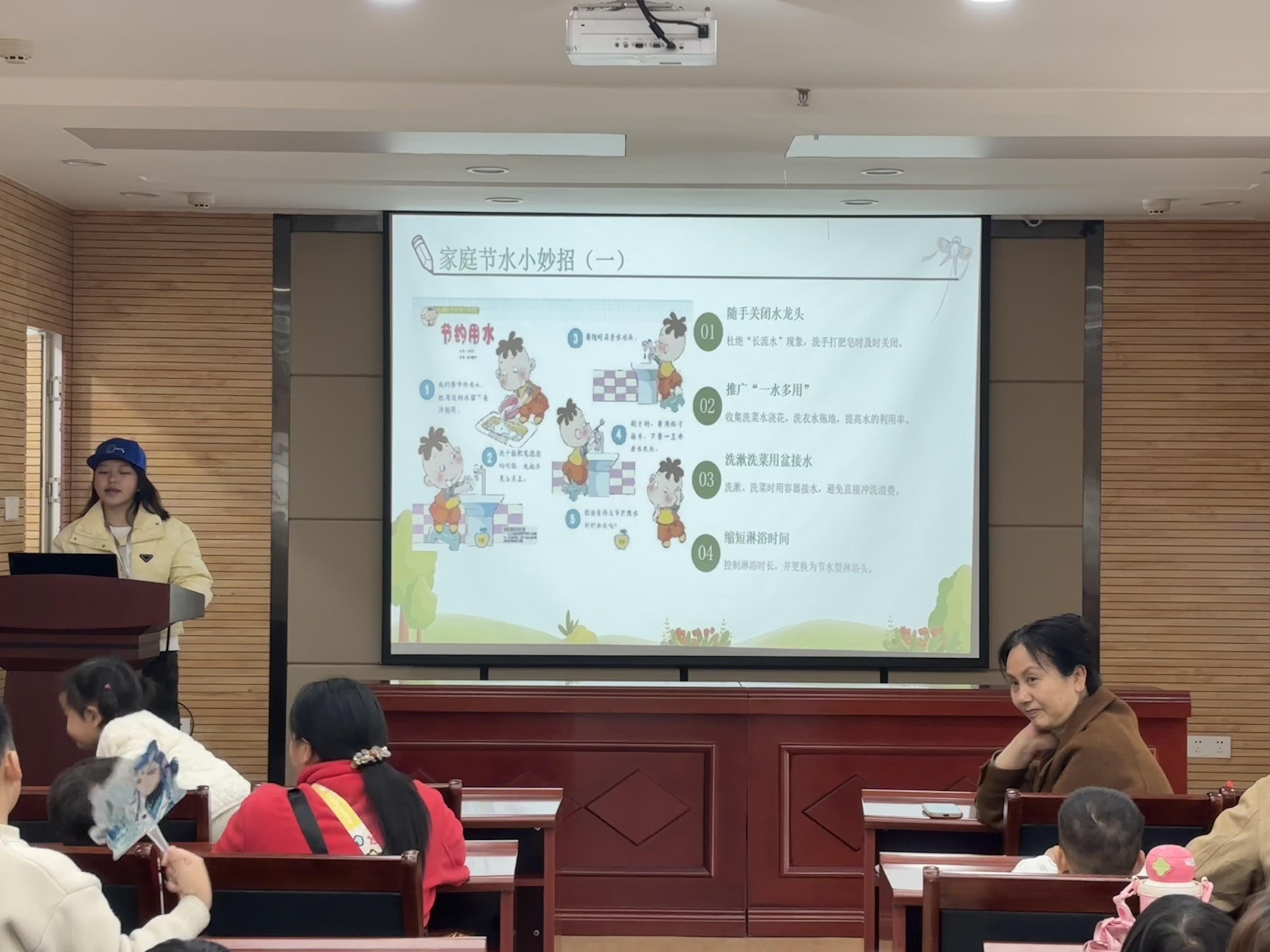 宣讲环节,志愿者们借助图文并茂的PPT,用数据和案例向居民讲解我国水资源短缺的现状,让大家直观感受到水资源的珍贵。针对日常用水用电中的浪费现象,志愿者引导参与活动的孩子们对照生活找问题:“有没有见过家里的水龙头没关紧,一直在滴水?”“离开房间时没关灯,是不是很浪费?”随后,志愿者们结合生活场景,分享了“一水多用”“及时维修漏水点”“随手关灯拔插头”等实用小妙招。