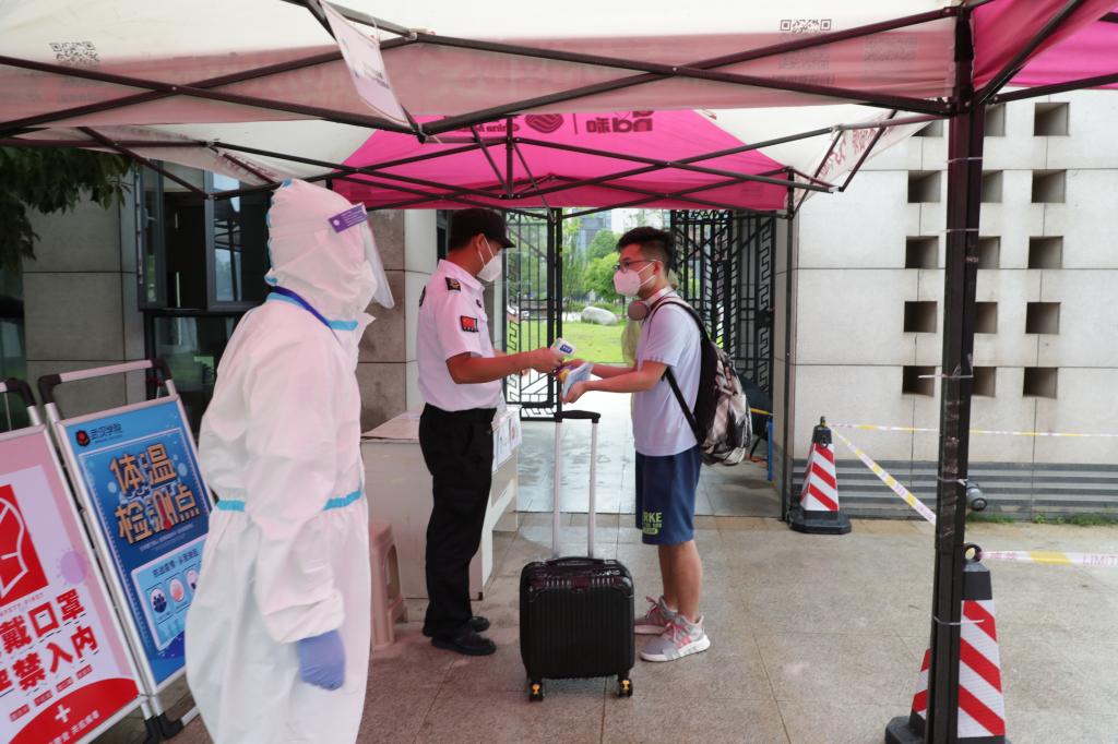 入校后,毕业生核验证件、测量体温后回到久违的宿舍。