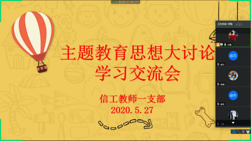 2020年5月27日,武汉学院信息工程学院教师一支部全体党员通过线上方式举行了以“教育思想大讨论”为主题的支部党日活动。