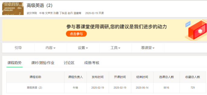 自制慕课课程,助力线上教学。外国语学院牛培老师所任教的课程是《高级英语(2)》,这门课程的慕课制作早在2019年牛培老师就和团队成员已完成,并上线中国大学慕课平台。此次线上教学,为更贴合我校的教材要求和学生学习特点,牛老师日夜赶工,又重新修改设计PPT,增加教材文本内容,对校内SPOC课程重新搭建了两个单元的资源框架,使其承担的课程线上教学顺利进行。