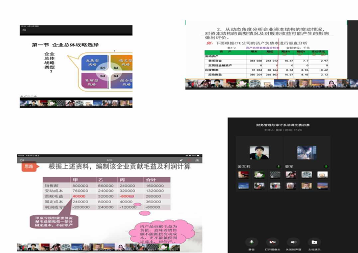 为提升青年教师创新性教学能力和教学水平,推进青年教师不断改进教学方式和手段,激发青年教师进行应用型课程教学改革的主动性、积极性和创造性,2020年4月25日财务管理与审计系教师利用企业微信会议平台在云端举行讲课比赛。